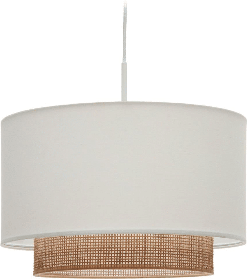 Pendel-lampe loftslampe Kave Home Erna stof og bambus Ø40ÃH25 cm hvid rustik kolonial