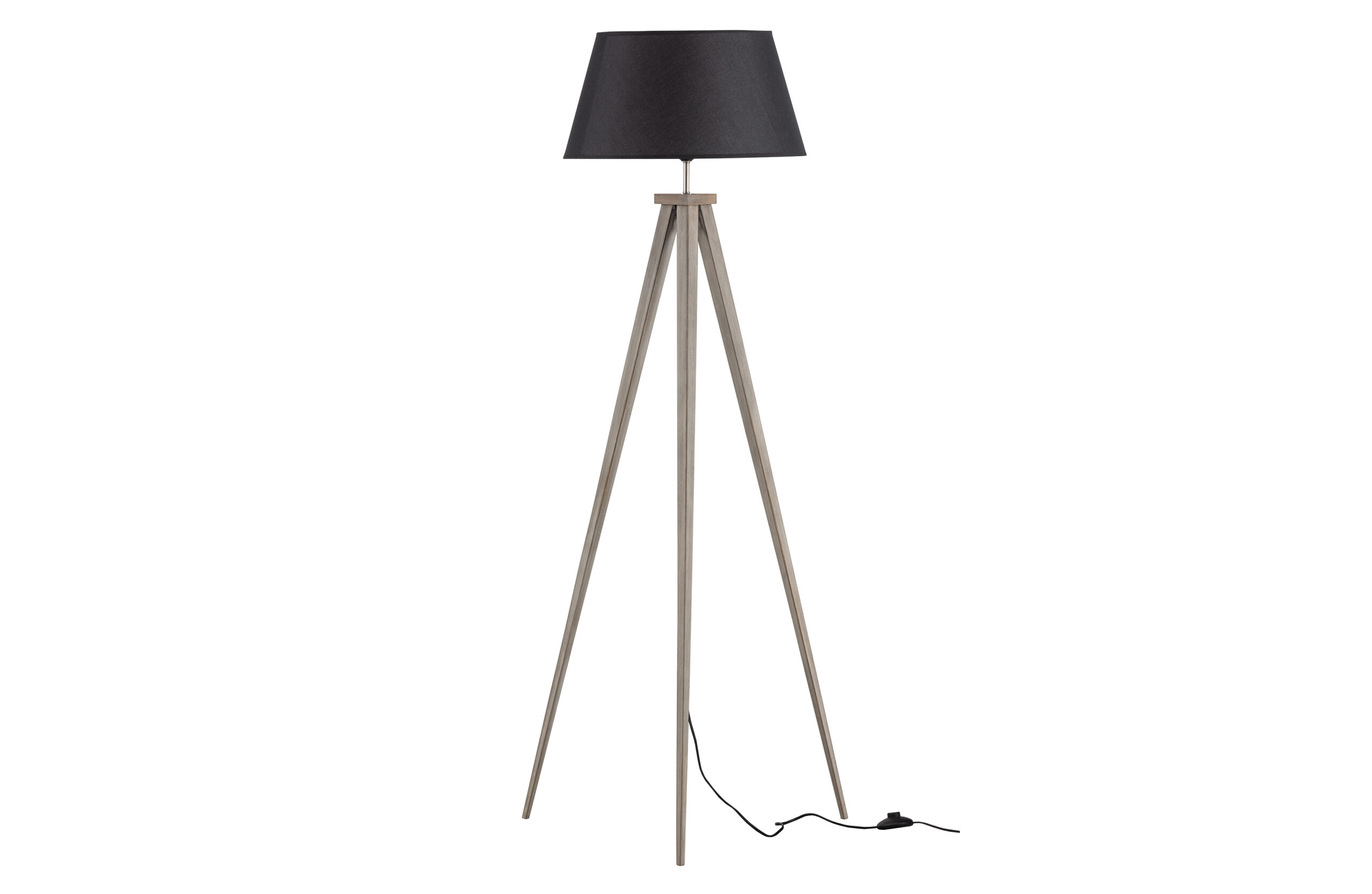 Klassisk Omar gulvlampe fra Woood Exclusive på stativben af bambus med sort finish og med stoflampeskærm E27 fitting, max. 40 Watt.